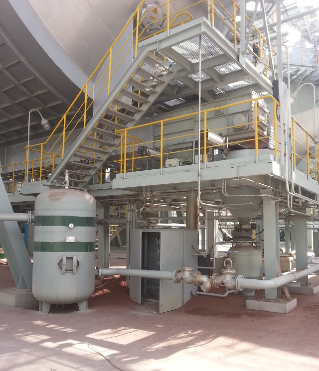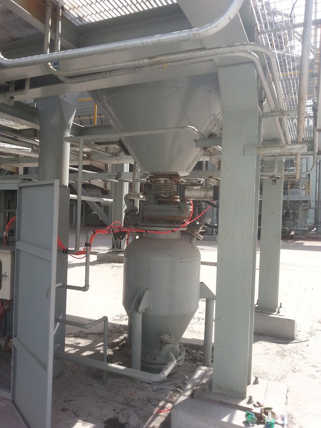 項(xiàng)目簡(jiǎn)介:轉(zhuǎn)爐干法除塵出灰口下方安裝氣力輸送倉(cāng)泵,采用氮?dú)鉃檩斔蜌庠矗瑢⒊龎m灰輸送至集中灰倉(cāng)集中處理。由于濕度較高(450度以上),且輸送物料為氧化亞鐵有自燃傾向,設(shè)備選型(倉(cāng)泵、閥門及儀表等)全部選擇高濕型。